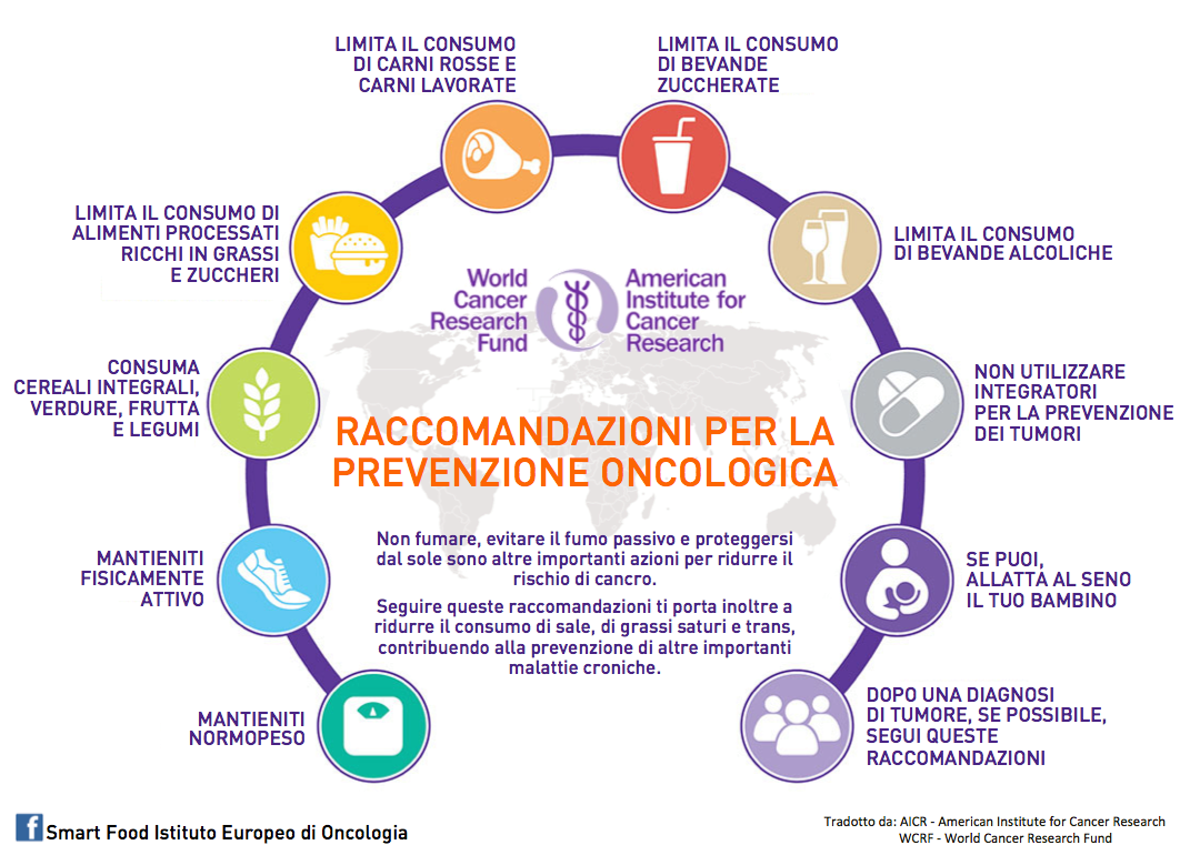 Oggi sono usciti gli aggiornamenti a queste raccomandazioni. Il nuovo rapporto sottolinea fin da subito che sedentarietà e assunzione di cibi raffinati, a elevato contenuto calorico, rappresentano la benzina più importante per il sovrappeso e l'obesità che negli ultimi anni hanno condotto ad un aumento drammatico dell'incidenza delle patologie tumorali in tutto il mondo. Il rapporto chiude con 10 raccomandazioni che riguardano principalmente il movimento (camminare a passo svelto), la rinuncia alle bevande zuccherine, la limitazione del consumo di alcol e carne rossa (specie conservata), l'aumento del consumo di cereali, frutta, verdura e legumi e l'allattamento al seno, suggerito come strategia di prevenzione al cancro, specie mammella e utero per la mamma, ma probabilmente anche per la futura salute del neonato. Il rapporto introduce anche un concettio nuovo: chi ha già avuto una malattia tumorale deve fare enorme attenzione a restare in salute attraverso dieta e movimento.